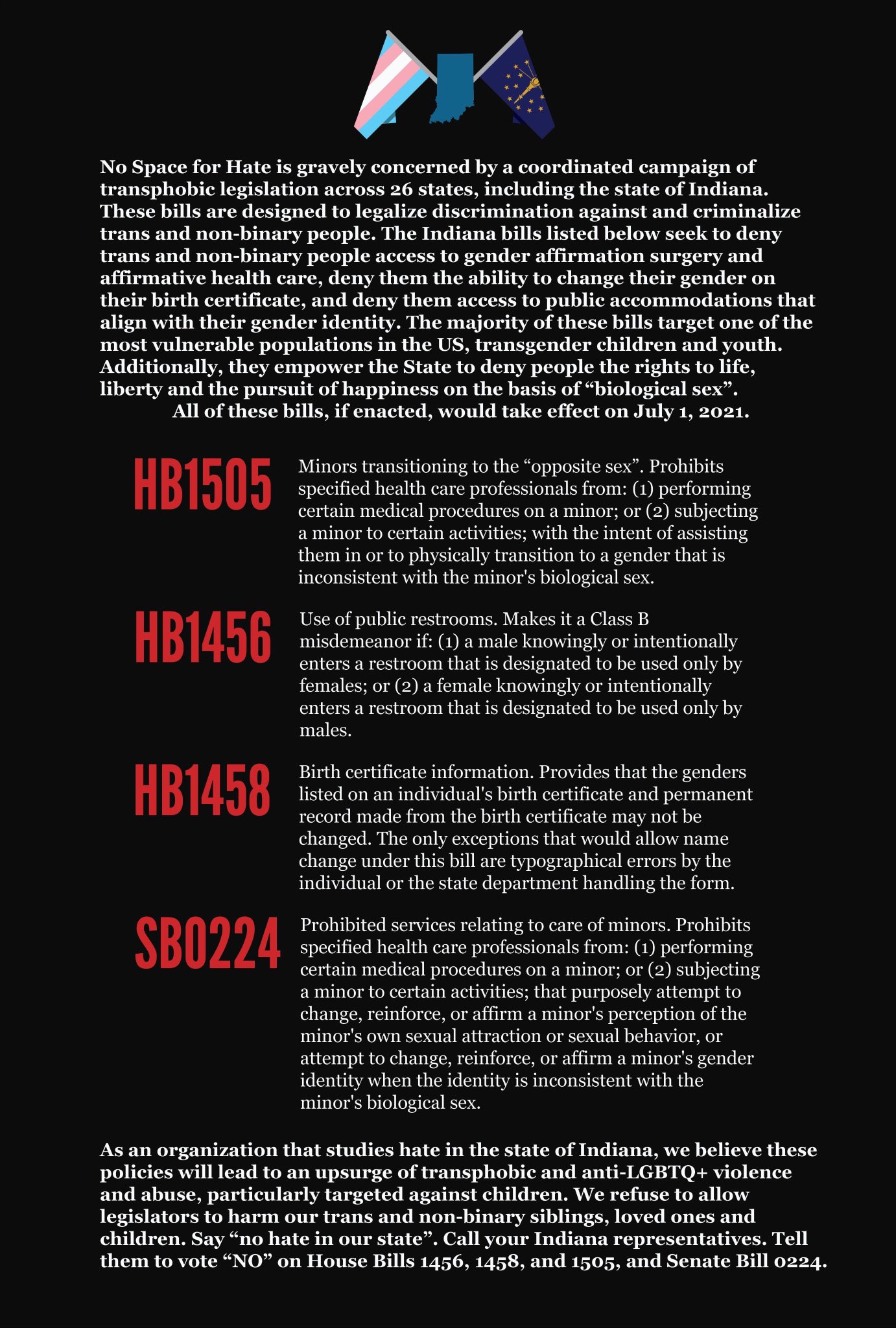 No Space For Hate Btown On Twitter We Have Actionitems Regarding Transphobic Legislation In Indiana As An Organization Whose Members Study The Far Right We Re Raising The Alarm About Policies That Will